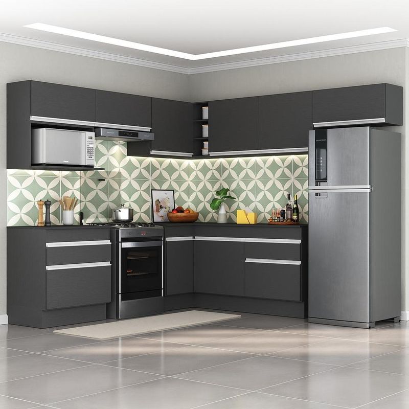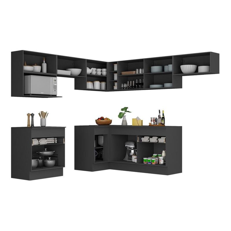 Casa e DecoraçãoMóveisArmário de CozinhaArmário de Cozinha Completa de Canto com Rodapé Veneza Multimóveis MP2106.898 Preto/Branco