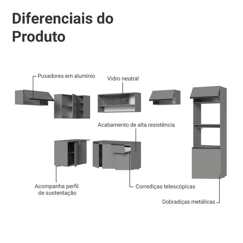 Casa e DecoraçãoMóveisCozinhasArmário de Cozinha Completa de Canto Suspenso 465cm Cinza Nice Madesa 07