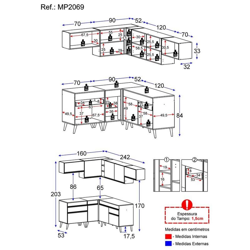 Casa e DecoraçãoMóveisCozinhasArmário de Cozinha Completa de Canto Veneza GB Multimóveis MP2069 Preta