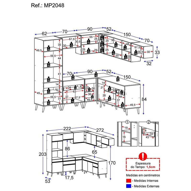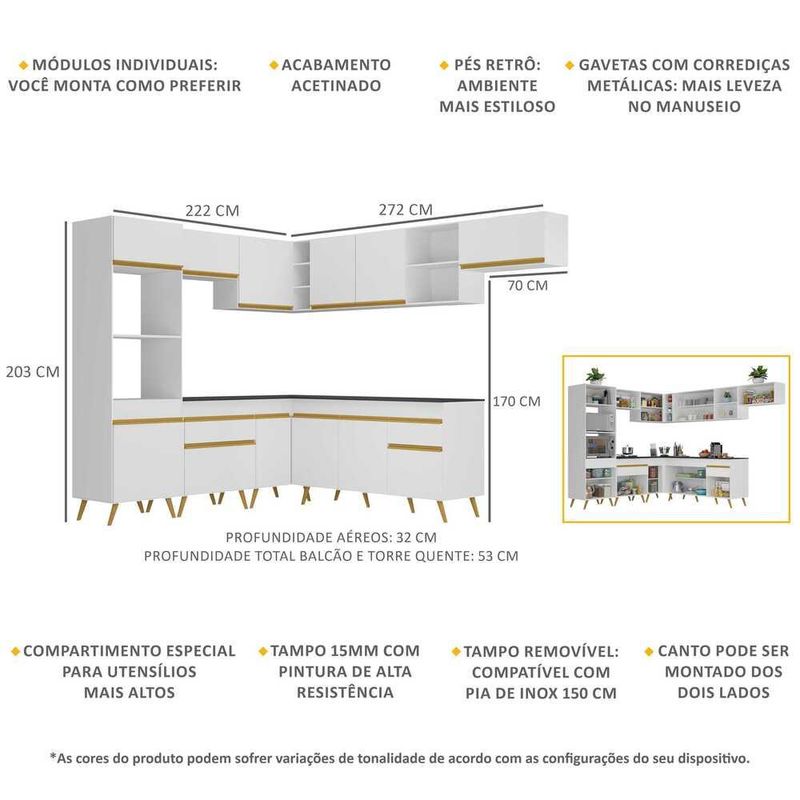 Casa e DecoraçãoMóveisCozinhasArmário de Cozinha Completa de Canto Veneza GW Multimóveis MP2048 Branca