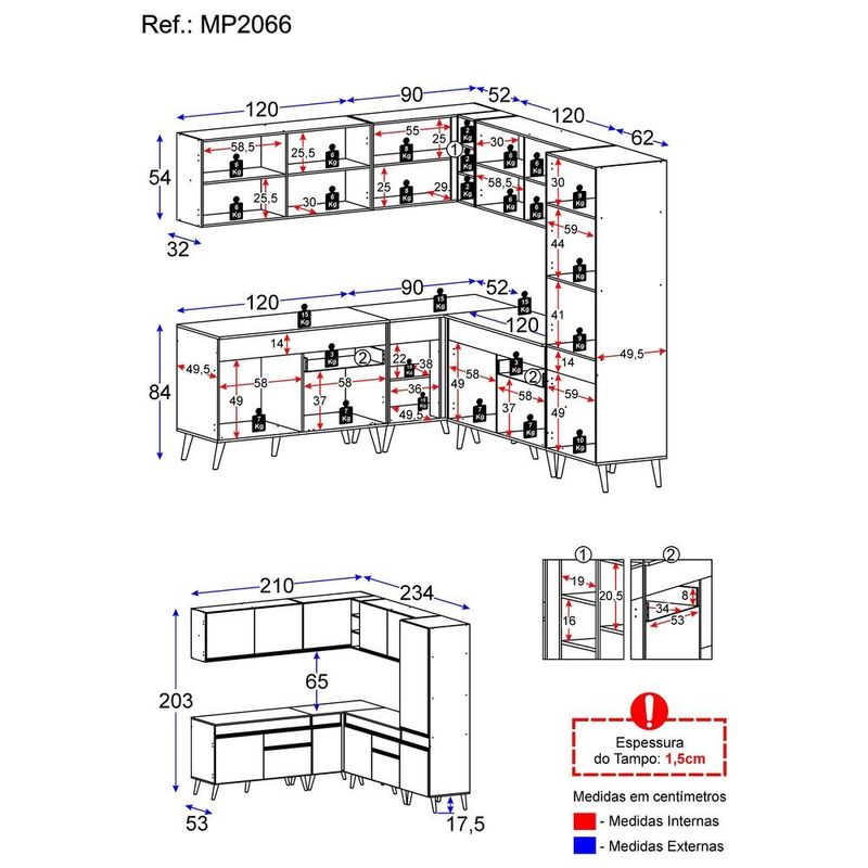 Casa e DecoraçãoMóveisArmário de CozinhaArmário de Cozinha Completa de Canto Veneza GW Multimóveis MP2066 Branca