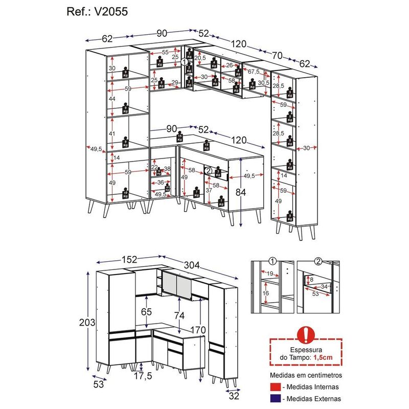 Armário de Cozinha Completa de Canto Veneza Multimóveis V2055 REF: 571227_Sicredi
