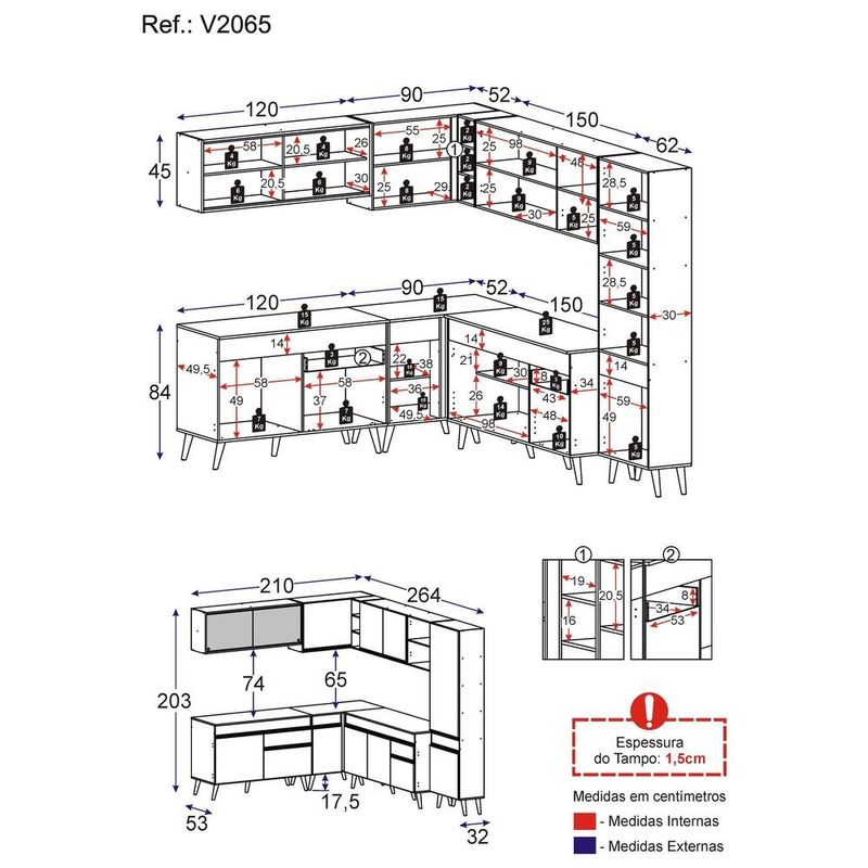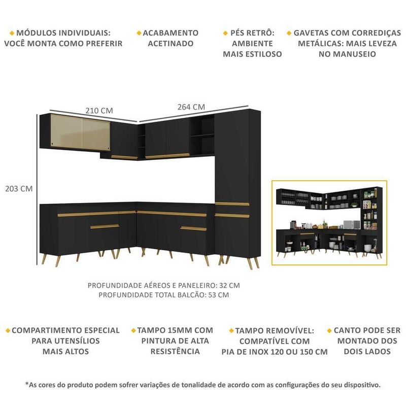 Armário de Cozinha Completa de Canto Veneza Multimóveis V2065 REF: 571679_Sicredi