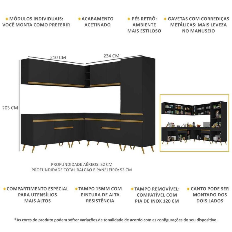 Armário de Cozinha Completa de Canto Veneza Multimóveis V2066 REF: 769671_Sicredi