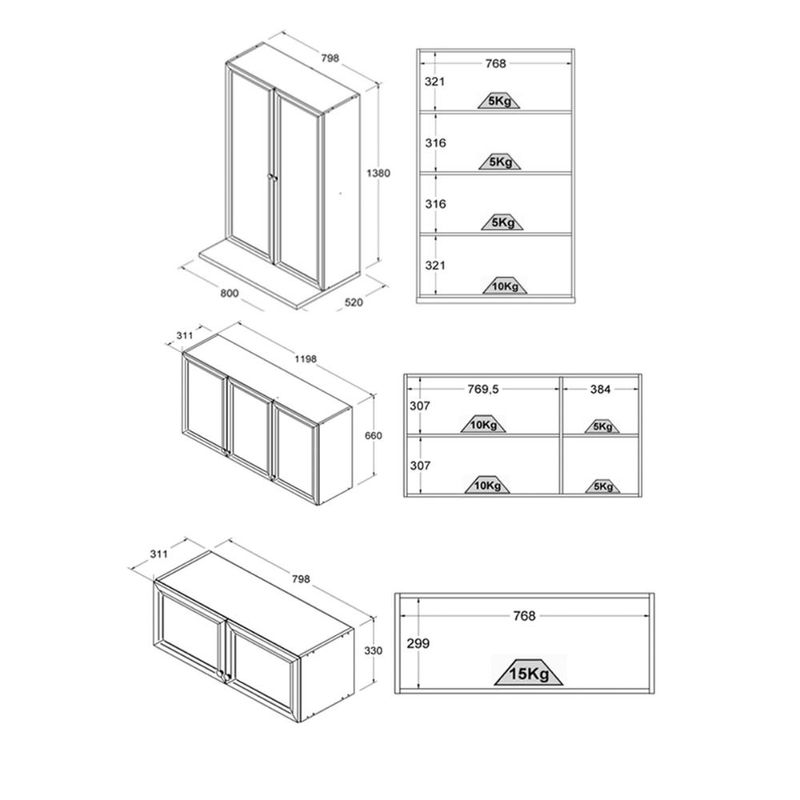 Casa e DecoraçãoMóveisCozinhasArmário de Cozinha Completo Ditália Berlim 5 Peças CV/BR B5
