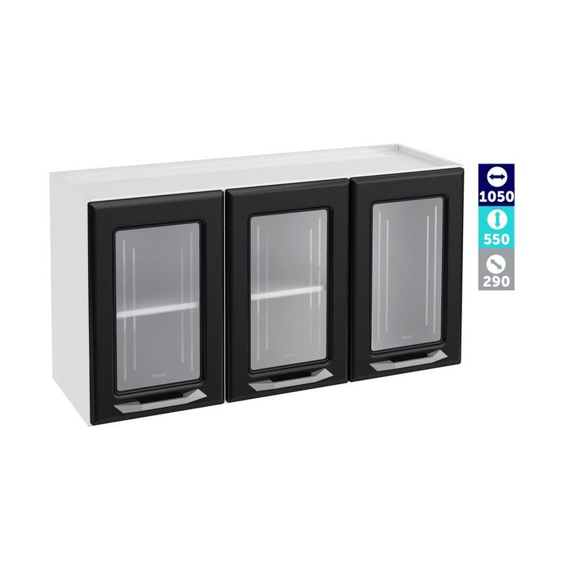 Armário de Cozinha de Aço Aéreo Triplo 105cm Rose Multimóveis Glass CR6089 Branco/Preto REF: 771764_Sicredi