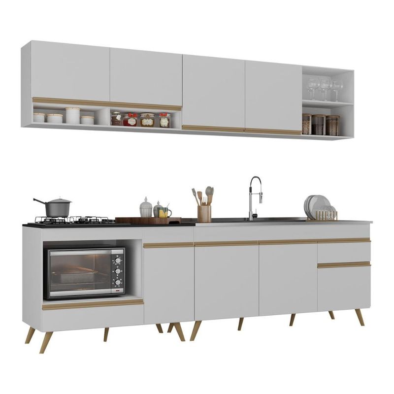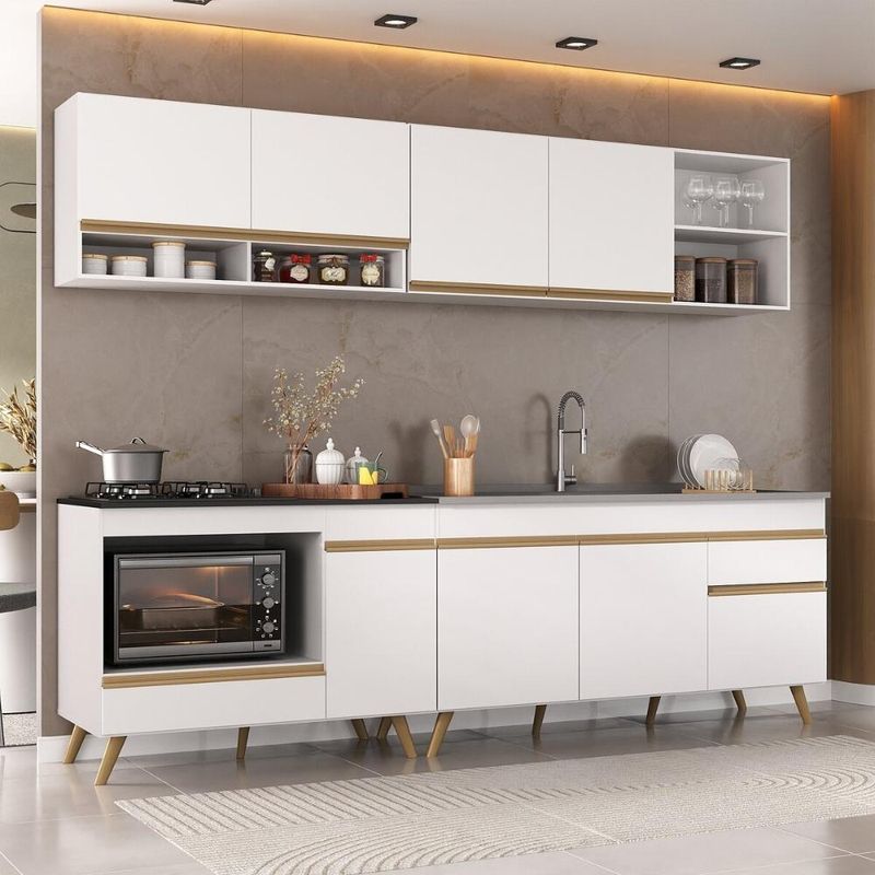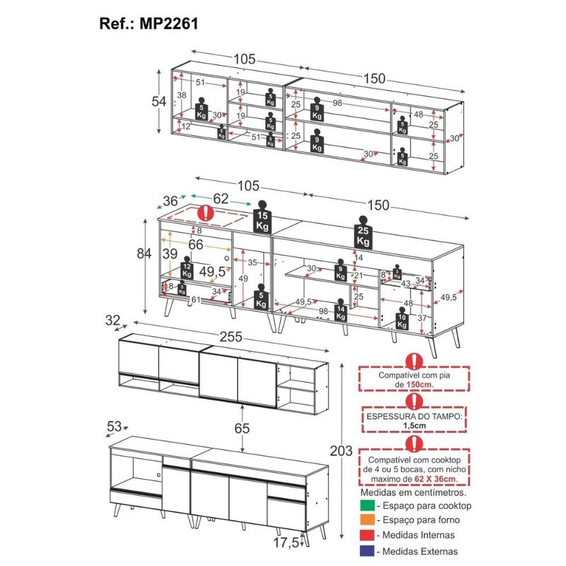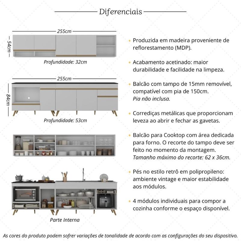 Armário de Cozinha Modulada Compacta 4 Pçs com Balcão para Cooktop Veneza Multimóveis MP2261 REF: 749997_Sicredi