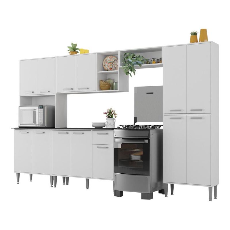 Casa e DecoraçãoMóveisArmário de CozinhaArmário de Cozinha Modulada Completa Compacta 294cm com Balcão de Pia Multimóveis MP2280