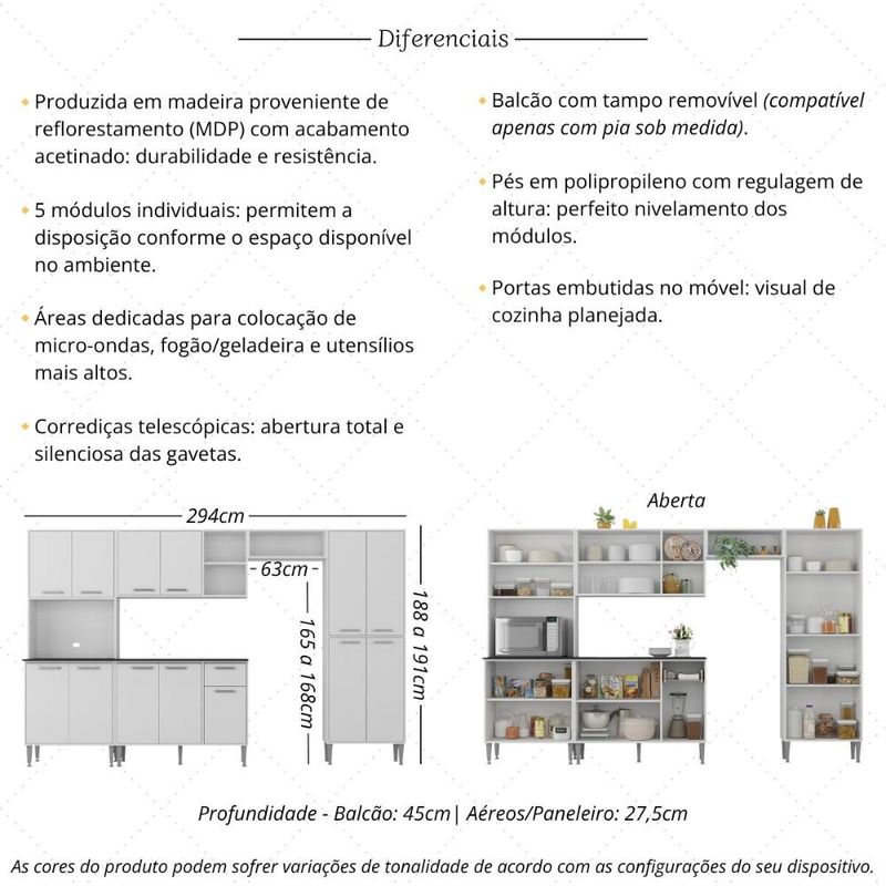 Armário de Cozinha Modulada Completa Compacta 294cm com Balcão de Pia Multimóveis MP2280 REF: 760863_Sicredi