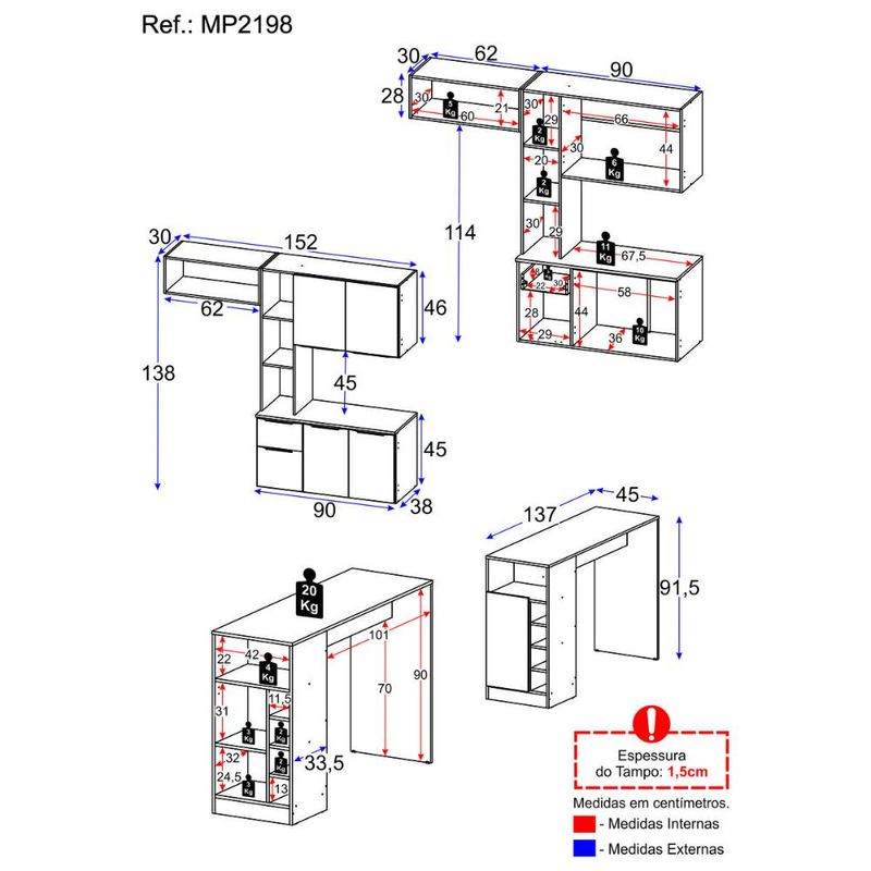 Armário de Cozinha Suspensa com Bancada Americana Sofia Multimóveis MP2198 REF: 570982_Sicredi