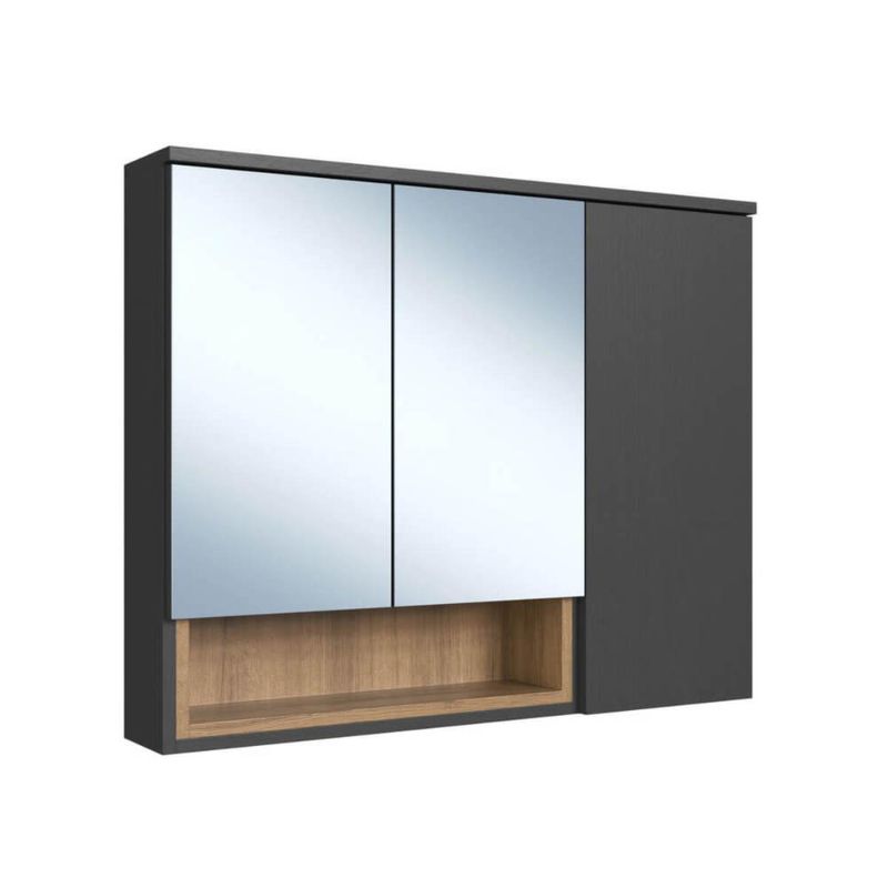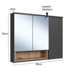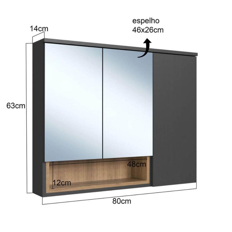 Armário Espelheira Cecília Mel Grafite com 3 Portas e Nicho de Banheiro REF: 7898744951589
