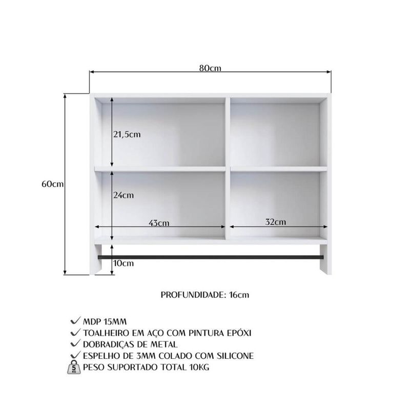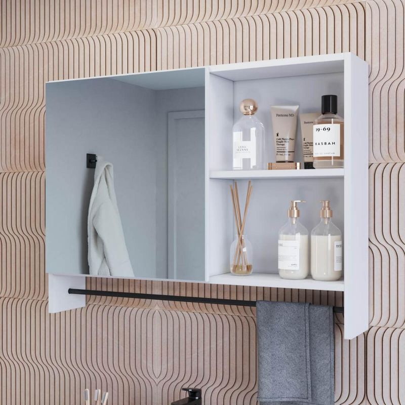 Armário Espelheira para Banheiro ES8020 com 1 Porta 1 Toalheiro e Nichos Branco REF: 7898758440536