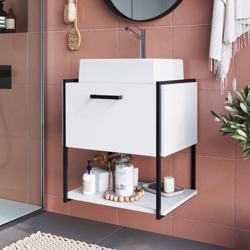 Casa e DecoraçãoMóveisArmário de BanheiroArmário Gabinete Banheiro Suspenso com cuba 50x38,5x54cm P1009 Branco