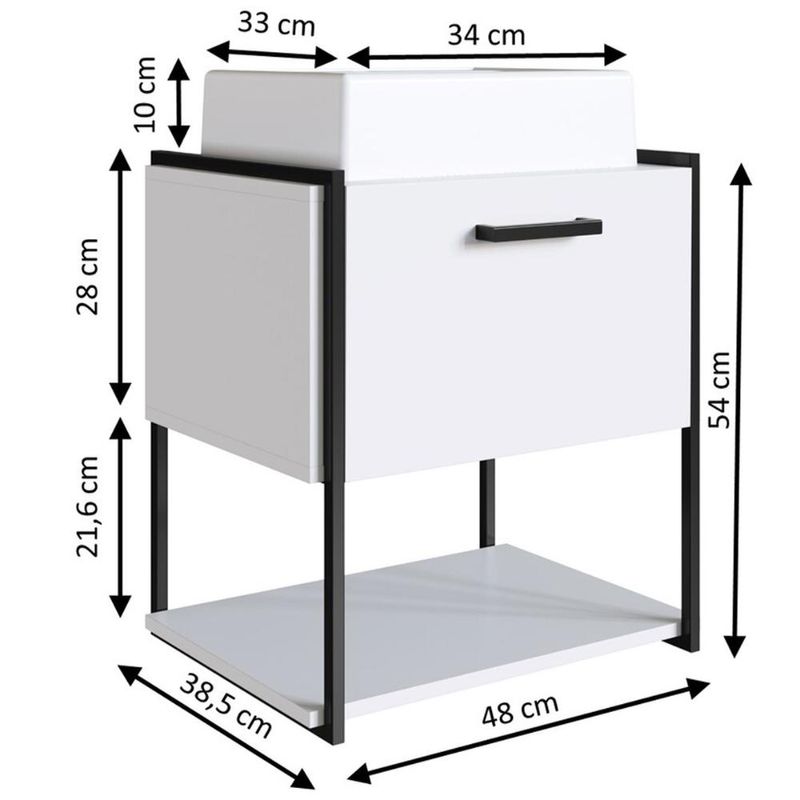 Armário Gabinete Banheiro Suspenso com cuba 50x38,5x54cm P1009 Branco REF: 7898270101434