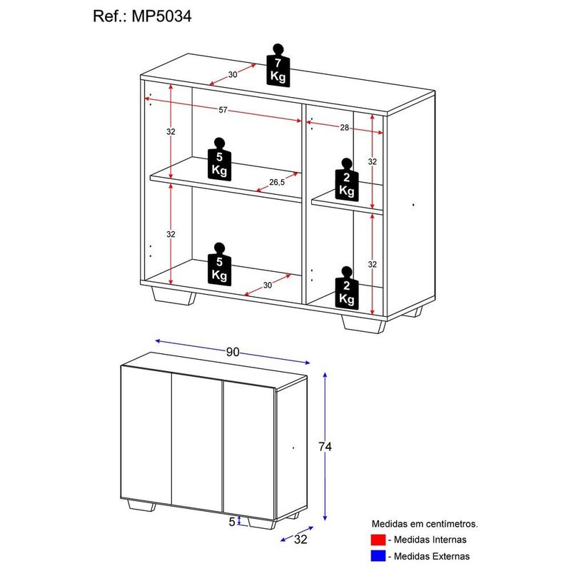 Armário Lavanderia com 3 Portas 90 cm Multimóveis MP5034 Branco/Preto REF: 568480_Sicredi