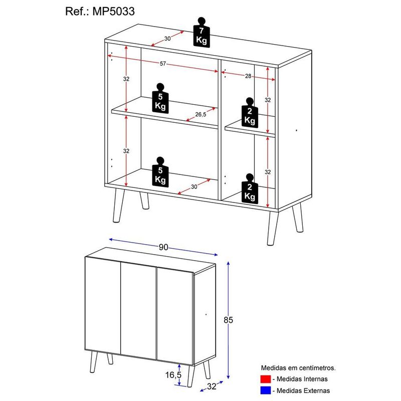 Casa e DecoraçãoMóveisArmário MultiusoArmário Lavanderia Retrô com 3 Portas 90 cm Multimóveis MP5033 Branco/Preto