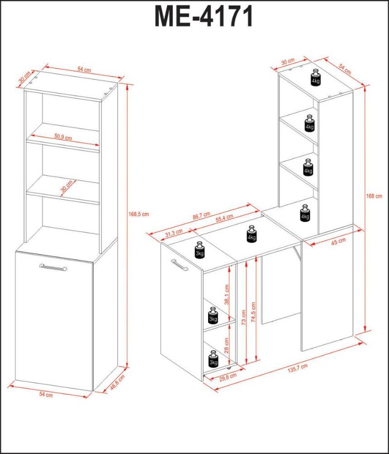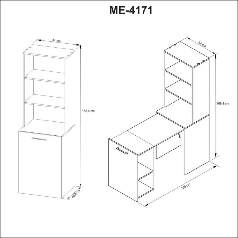 Armário Multiuso 54x136x168,4cm Retrátil Bancada ME4171 Amêndoa Tecnomobili Dobravél REF: 7908212518302