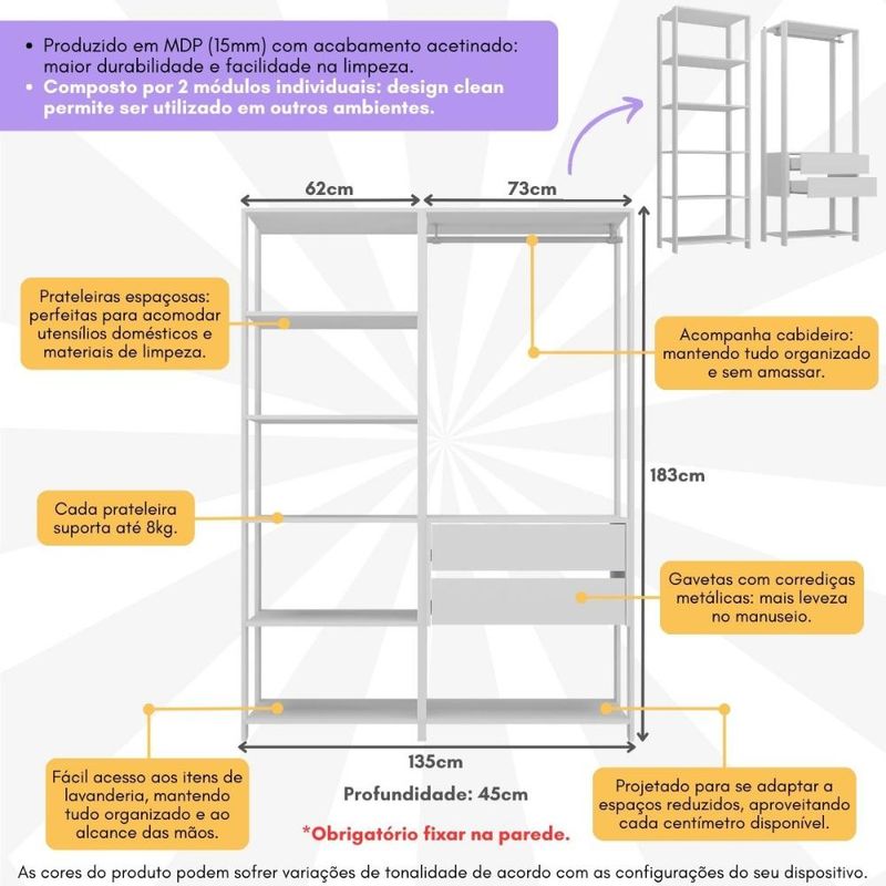 Casa e DecoraçãoMóveisArmário MultiusoArmário Multiuso de Lavanderia Modulado 135cm 2 Peças Multimóveis MP5058