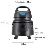 Aspirador de Pó e Água Electrolux 1400W 5L c/ Conjunto de Acessórios e Rodas 360° (AWD01) REF: 658879_Sicredi