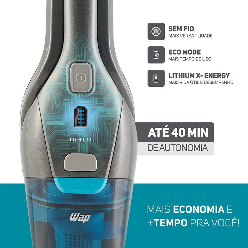 EletroportáteisAspirador de póAspirador de Pó Stick Wap Eco Rápido 2 em 1 Sem Fio 85W - Cinza
