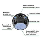 Aspirador Robô Philco PAS23 3 em 1 MOP 90min Sensor Antiqueda e Obstáculos Bivolt Preto REF: 7891356121517