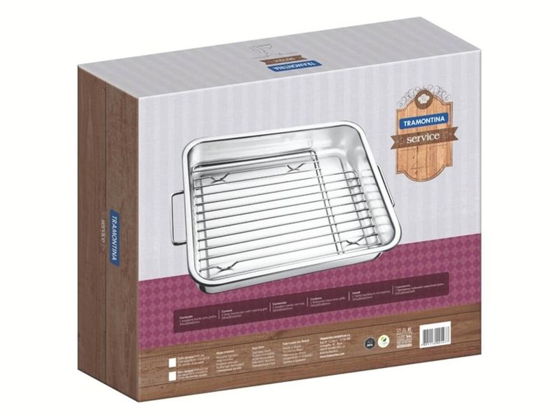 Assadeira com Grelha Tramontina Service 34 x 28cm em Aço Inox REF: 7891116005477