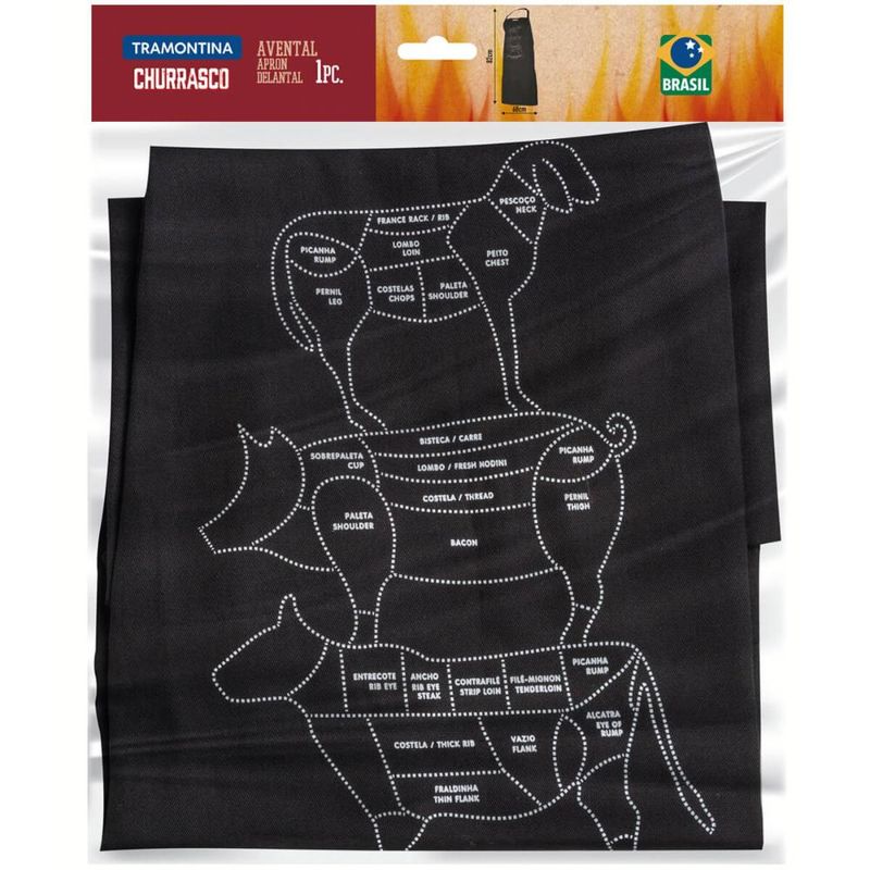 Avental de Churrasqueiro Tramontina Estampado Preto 100% Algodão Churrasco Cozinheiro REF: 7891112175778