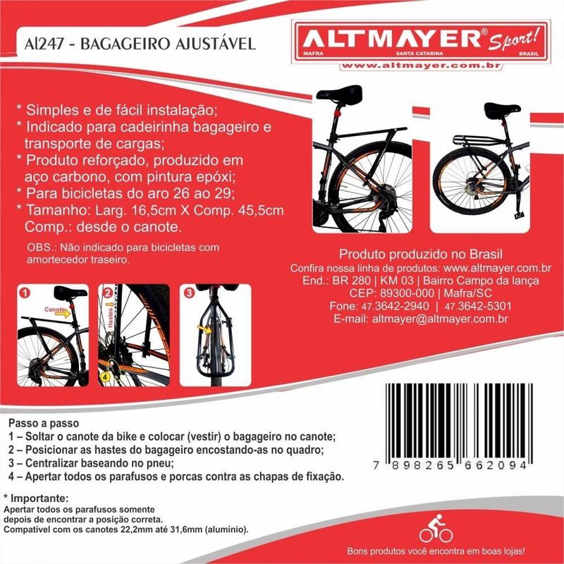 Bagageiro Ajustável AL-247 Preto para Aro 26 / 29 REF: 7898265662094