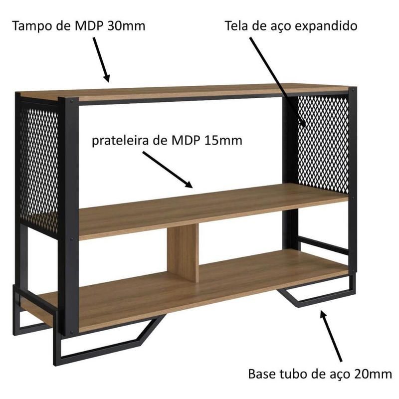 Balcão Aparador 2 Prateleiras 134x40x85cm Estilo Industrial Telado Preto Mel P1021 REF: 7898270101694