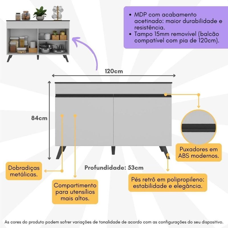 Casa e DecoraçãoMóveisArmário de CozinhaBalcão Cozinha Gabinete Pia 120 cm 2 Portas Veneza Multimóveis MP3738 Branco/Preto