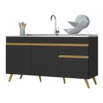 Casa e DecoraçãoMóveisBalcão e GabineteBalcão Cozinha Gabinete Pia 150 cm 3 Portas 1 Gaveta Veneza GB Multimóveis MP2072 Preto