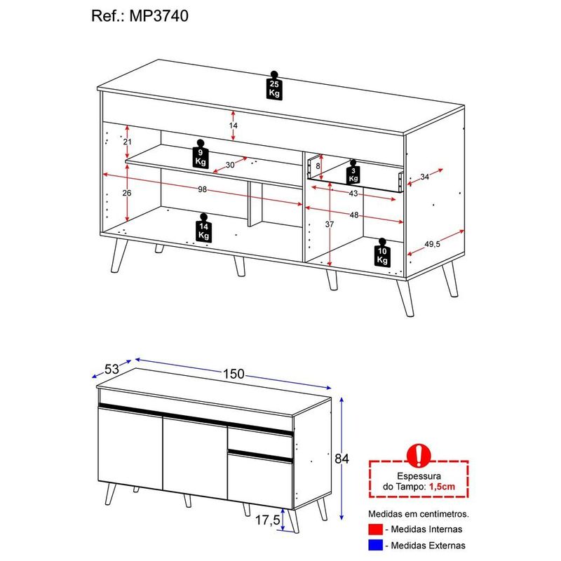 Casa e DecoraçãoMóveisArmário de CozinhaBalcão Cozinha Gabinete Pia 150 cm 3 Portas 1 Gaveta Veneza Multimóveis MP3740.964 Branco/Preto