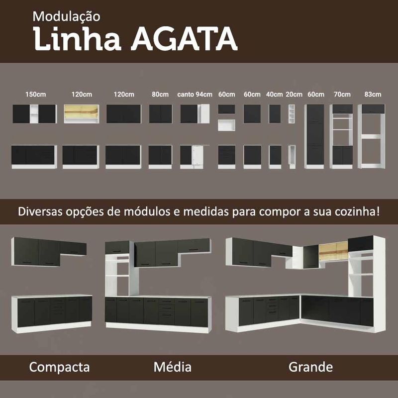 Balcão de Canto Madesa Agata 1 Porta - Branco/Preto REF: 510278_Sicredi