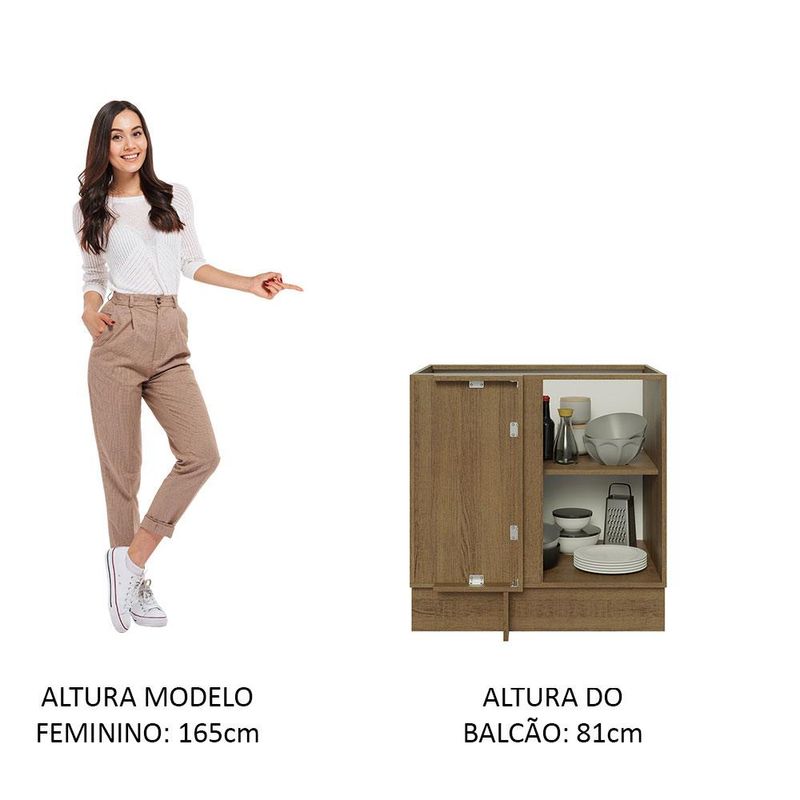 Balcão de Canto Madesa Lux 1 Porta (Sem Tampo) - Rustic/Branco Veludo REF: 510294_Sicredi