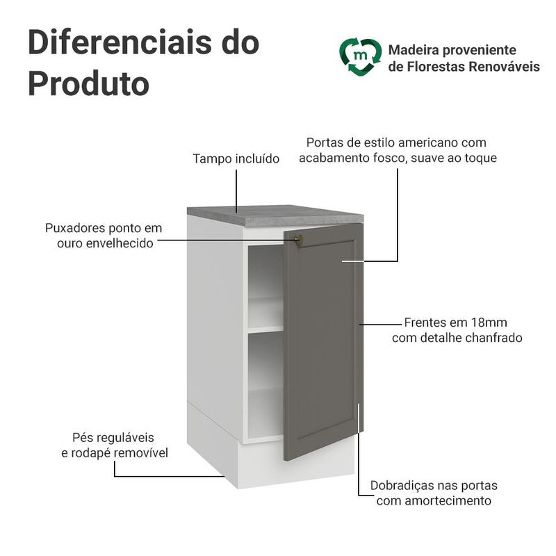 Balcão de Cozinha 40 cm 1 Porta Branco/Cinza Vik Madesa REF: 758558_Sicredi