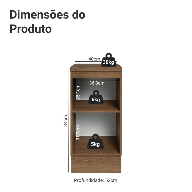 Casa e DecoraçãoMóveisArmário de CozinhaBalcão de Cozinha 40 cm 1 Porta Rustic/Cinza Vik Madesa