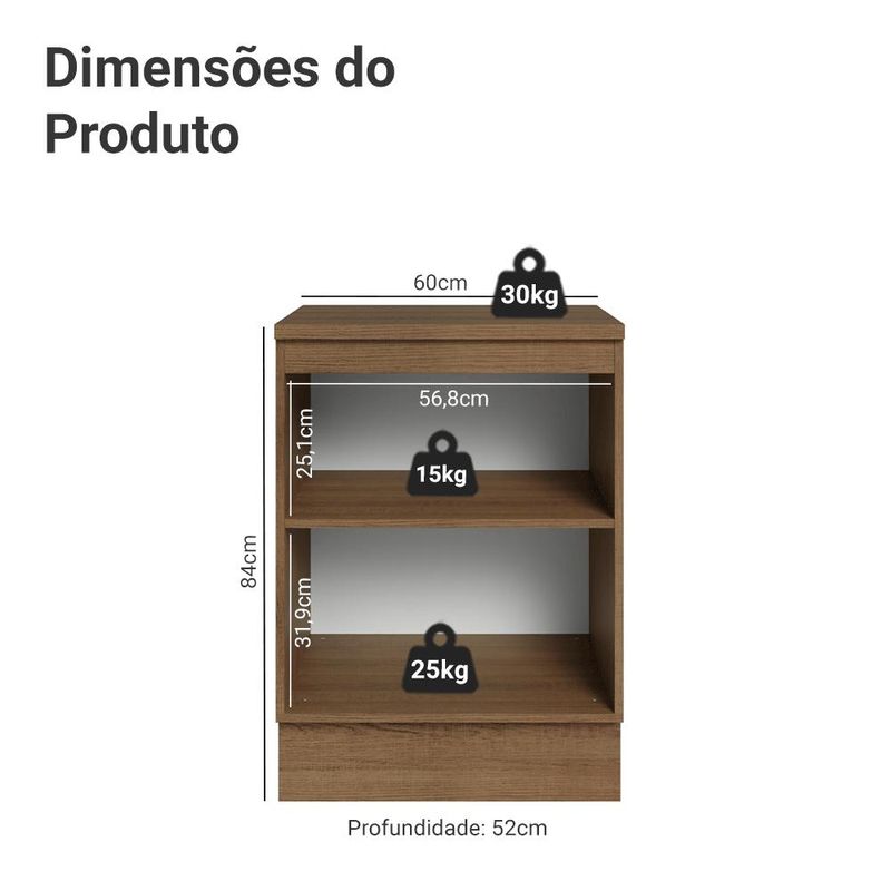 Casa e DecoraçãoMóveisArmário de CozinhaBalcão de Cozinha 60 cm 1 Porta Rustic/Cinza Vik Madesa