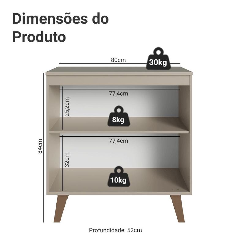 Casa e DecoraçãoMóveisArmário de CozinhaBalcão de Cozinha 80 cm 2 Portas Com Pés Crema Nice Madesa