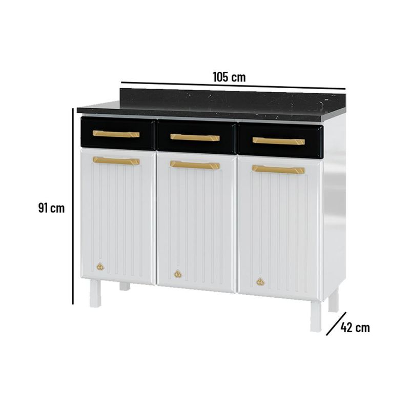 Balcão de Cozinha de Aço com Tampo 3 Portas e 3 Gavetas 105cm Multimóveis CR20360 REF: 767292_Sicredi