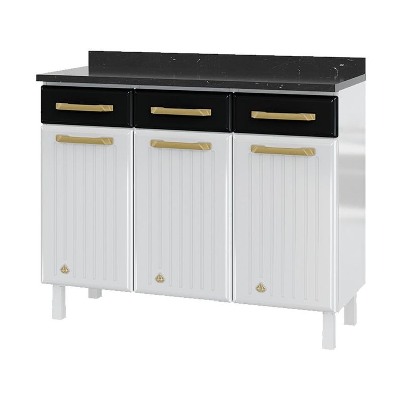 Casa e DecoraçãoMóveisArmário de CozinhaBalcão de Cozinha de Aço com Tampo 3 Portas e 3 Gavetas 105cm Multimóveis CR20360