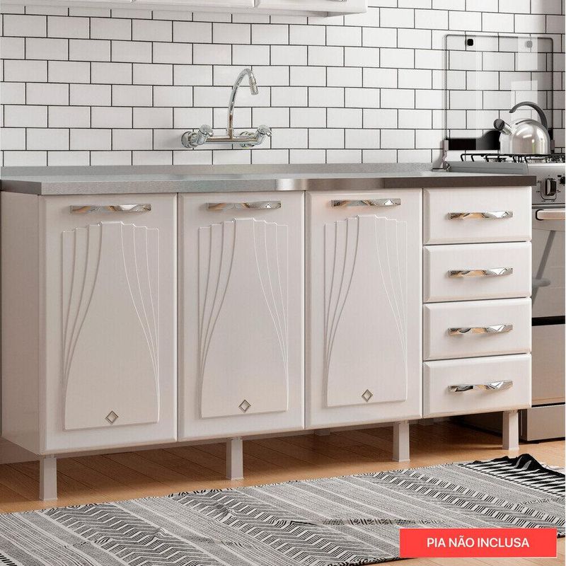 Balcão de Cozinha de Aço Quádruplo sem Tampo para Pia 160cm Clara Multimóveis CR6148 Branco REF: 575264_Sicredi