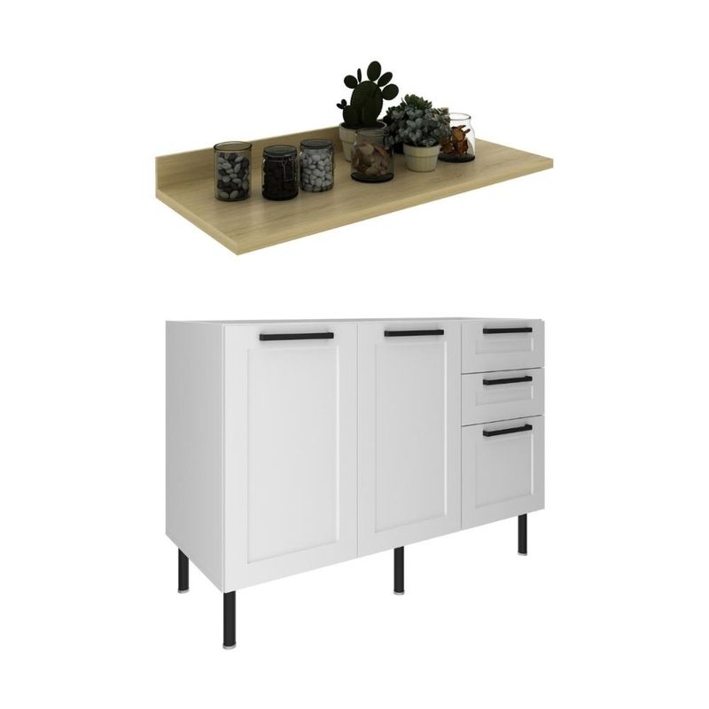 Casa e DecoraçãoMóveisBalcão e GabineteBalcão de Cozinha em MDF com Tampo 2 Portas e 3 Gavetas 120cm Multimóveis CR20462
