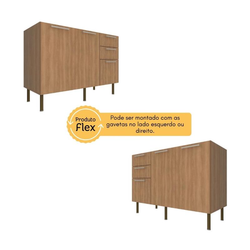 Casa e DecoraçãoMóveisBalcão e GabineteBalcão de Cozinha Gabinete para Pia 120cm 2 Portas 3 Gavetas Multimóveis CR20441