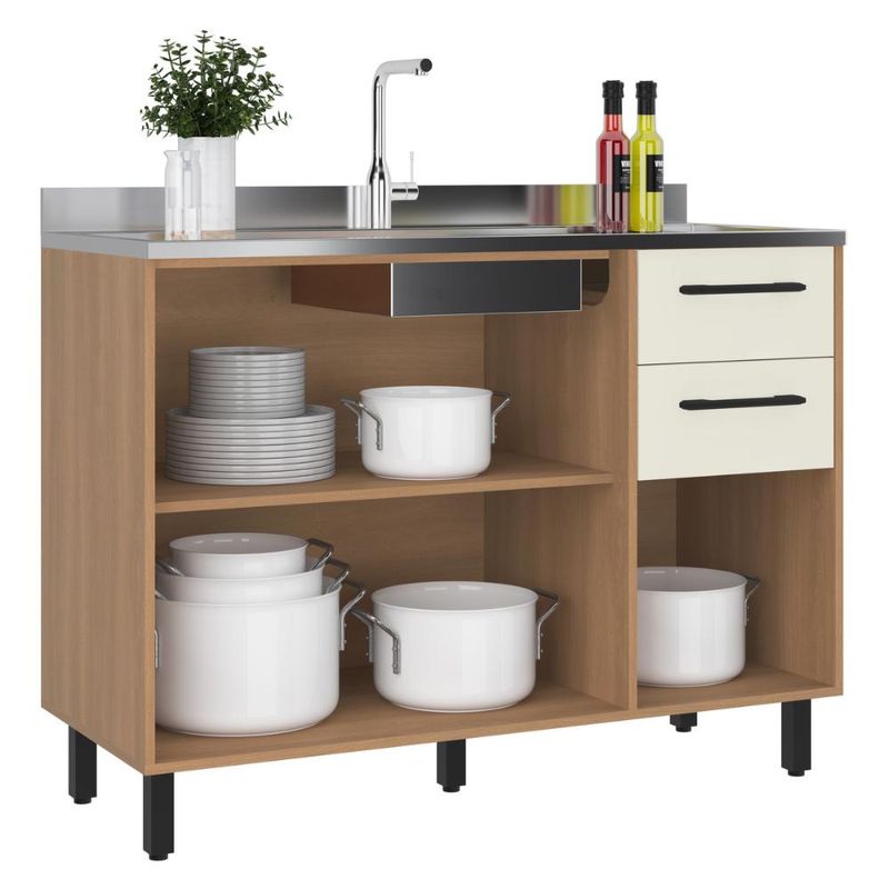 Balcão de Cozinha Gabinete Pia 120cm 3 Portas e 2 Gavetas Havana Multimóveis CR20310 REF: 767961_Sicredi