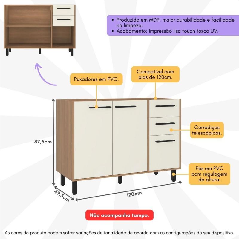 Casa e DecoraçãoMóveisArmário de CozinhaBalcão de Cozinha Gabinete Pia 120cm 3 Portas e 2 Gavetas Havana Multimóveis CR20310