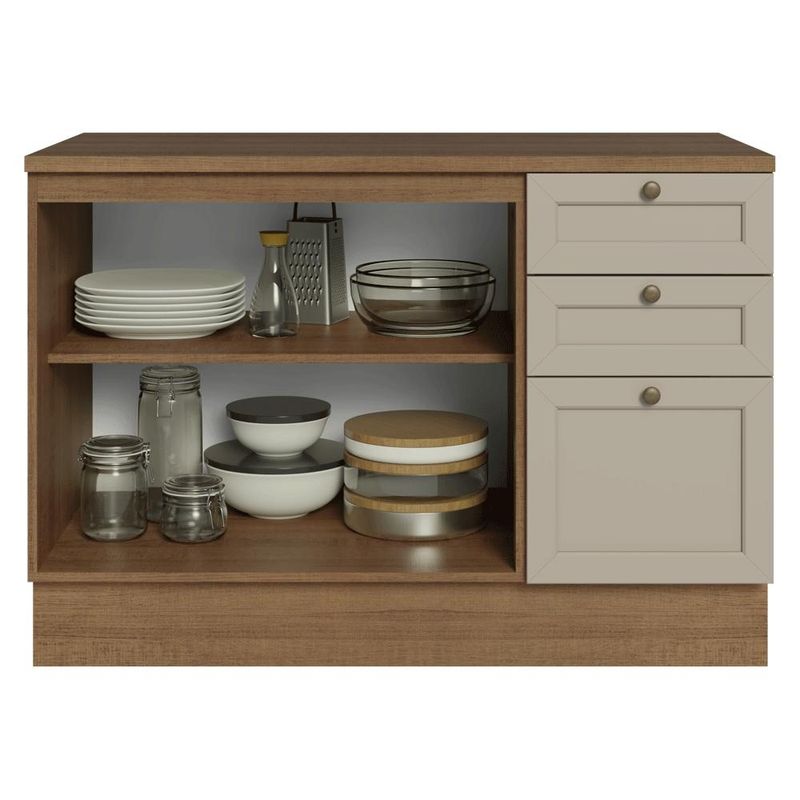 Balcão de Pia 120 cm 2 Portas 3 Gavetas (Com Tampo) Rustic/Crema Vik Madesa REF: 7891760112354