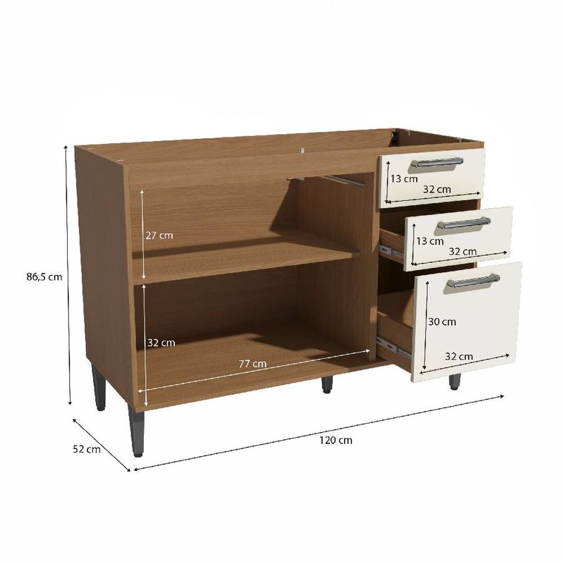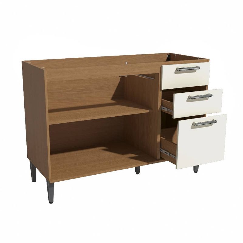 Balcão de Pia 2 Portas e 3 Gavetas 120 cm Linna T722 Kappesberg Canela e Off White REF: 7909875220274