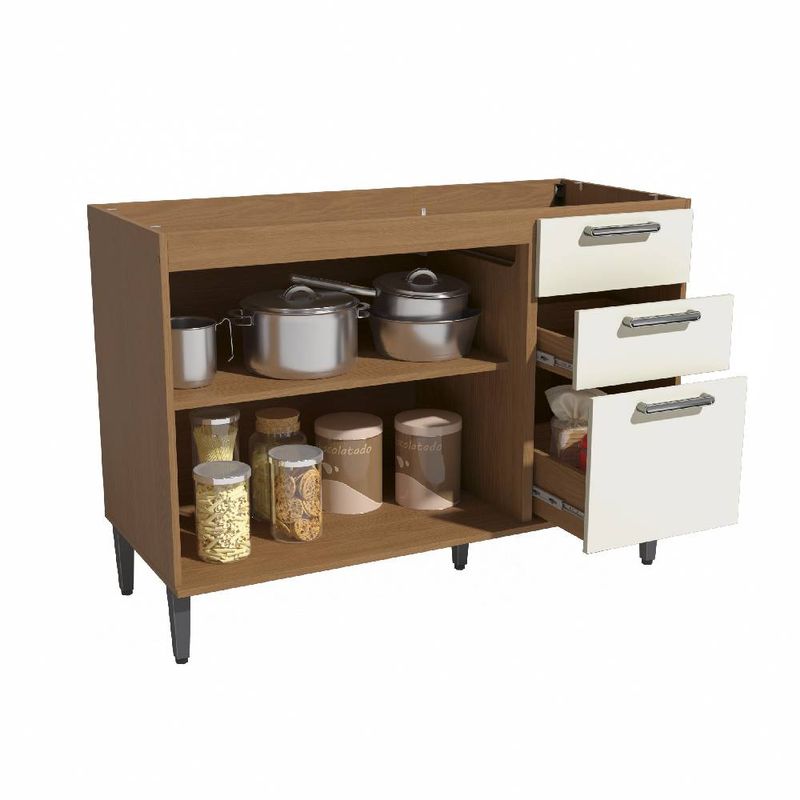 Casa e DecoraçãoMóveisBalcão e GabineteBalcão de Pia 2 Portas e 3 Gavetas 120 cm Linna T722 Kappesberg Canela e Off White