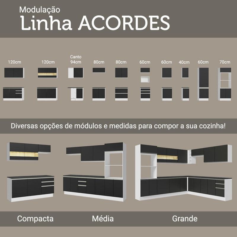 Casa e DecoraçãoMóveisBalcão e GabineteBalcão de Pia Cozinha 100% MDF 120 cm 3 Portas e 2 Gavetas Branco/Preto Acordes Madesa