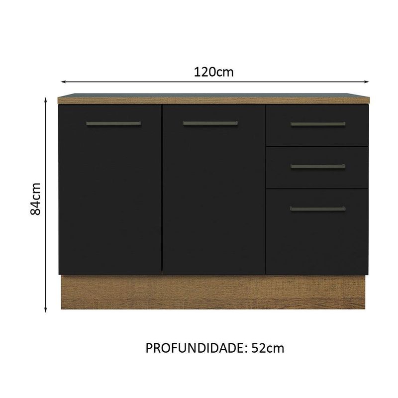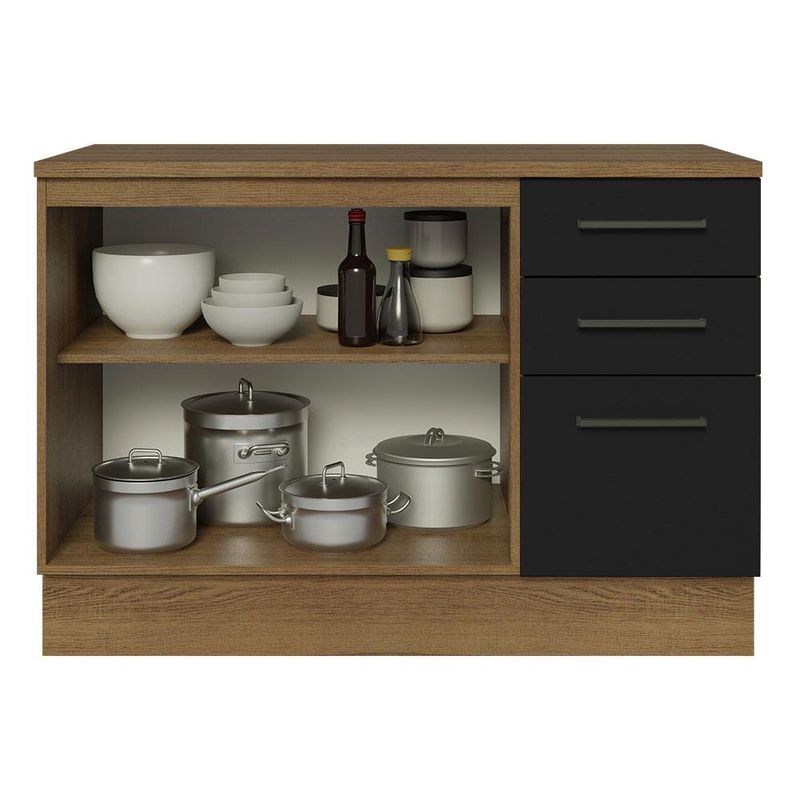 Casa e DecoraçãoMóveisBalcão e GabineteBalcão de Pia Cozinha 2 Portas e 3 Gavetas (Com Tampo) Rustic/Preto Agata Madesa